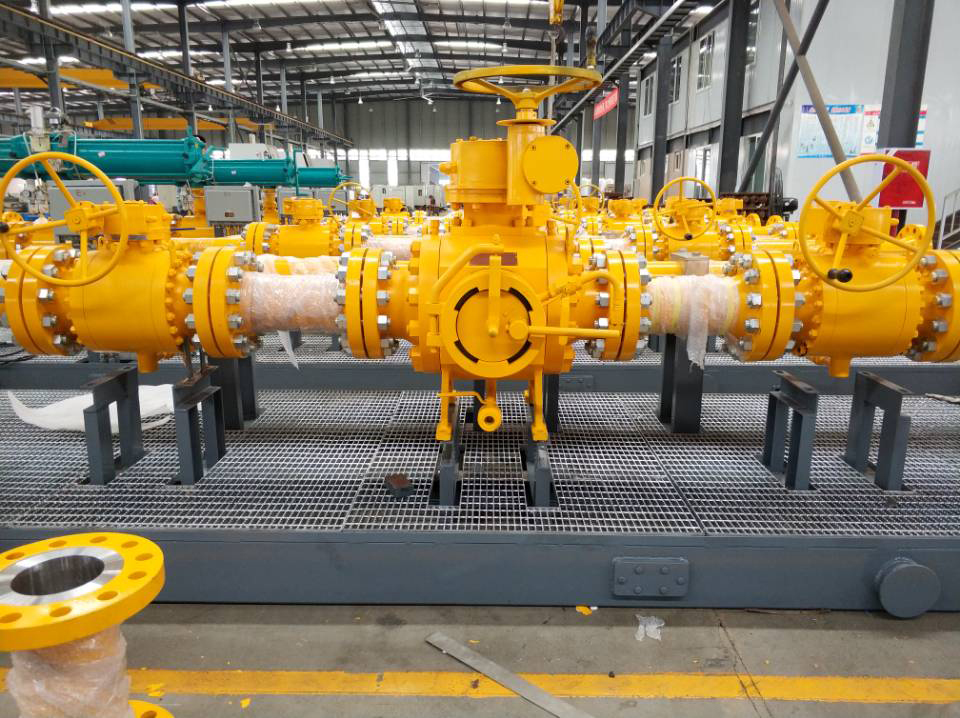 撬裝指一組設(shè)備(容器、泵、閥門(mén)、管道等)固定在一個(gè)角鋼或工字鋼制成的底盤(pán)上。可以相對(duì)方便的移動(dòng)?,F(xiàn)在的撬裝也包括將閥門(mén)、泵等設(shè)備安裝好了的一個(gè)整體式集合,與系統(tǒng)上其他設(shè)備連接時(shí),無(wú)需再在中間安裝閥門(mén)、儀表等設(shè)備,只需用管線(xiàn)聯(lián)通即可。 公司開(kāi)發(fā)的撬裝產(chǎn)品用于頁(yè)巖氣田開(kāi)采使用的各種設(shè)備撬裝。因頁(yè)巖氣開(kāi)采期較短,需要頻繁搬遷開(kāi)采設(shè)備,因此將常用的分離計(jì)量、脫水裝置、清管器等設(shè)備閥門(mén)集成在不同的撬裝上,便于搬遷。